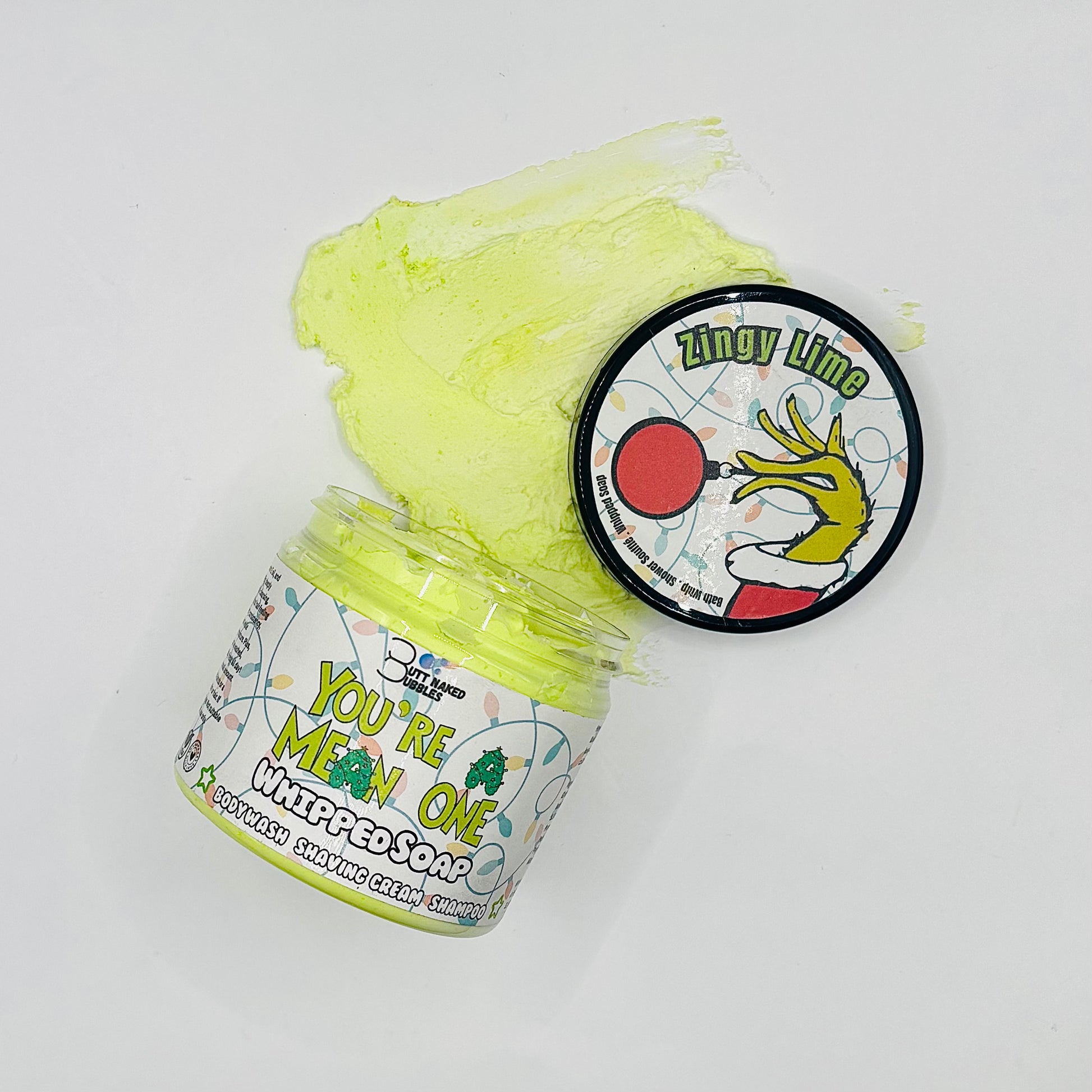 He’s a Mean One — scented in zingy lime, this whipped soap is basically the Grinch in a tub. Limited edition, mischievous, and way too good to share. Smells like trouble, lathers like luxury, disappears faster than holiday cheer.